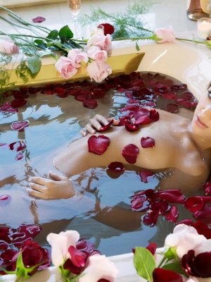 Голая девица с красивой попкой Eliza Ibarra позирует в ванной