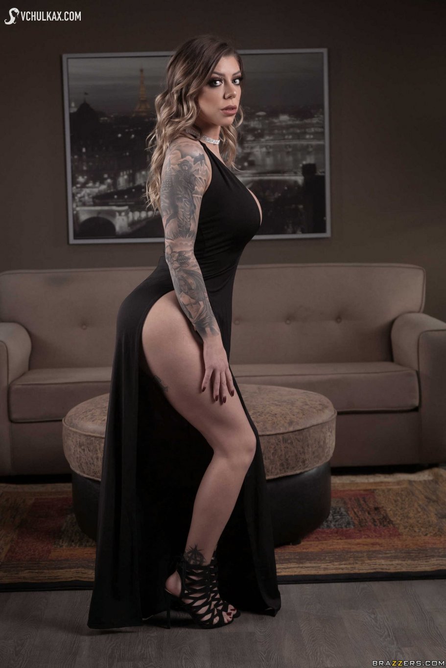 Порно актриса Karma Rx без белья в черном сексуальном платье
