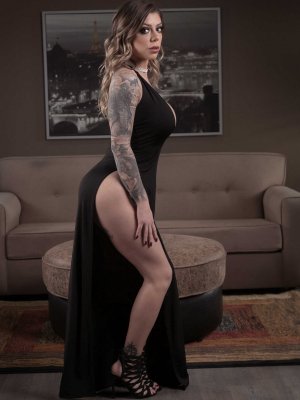 Татуированная шлюха Karma Rx раздвигает ноги на столе