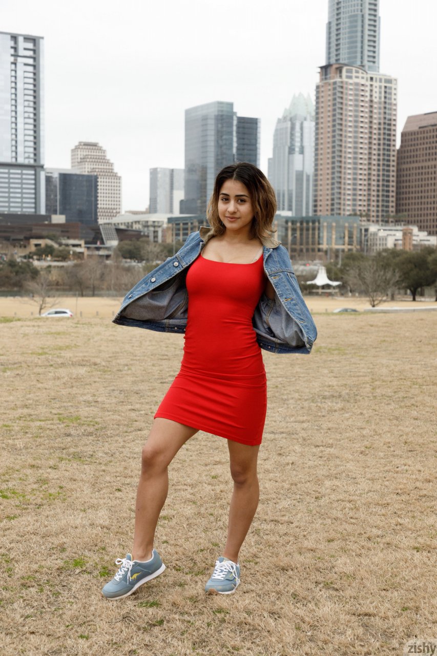 Смуглая девушка Mia Valentine снимается в уличной атмосфере большого мегаполиса. Молодая красотка в красном платье прогуливается по городским окрестностям, показывая интимные прелести. Очаровательная смуглянка с потрясающей улыбкой хвастается внушительной растяжкой и красивыми ножками. Она задирает платье, демонстрируя упругую попку. Под платьем виднеются светлые трусики, которые успешно прикрывают молоденькую писю. Брюнетка оголяет грудь с коричневыми сосками. Шикарные сиськи похотливой смугляночки способны очаровать с первого взгляда.Следующие порно фото