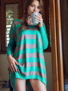 Молодая украинская девушка Mila Azul обожает читать эротические рассказы, попивая горячий кофе по утру. Сегодня она позволила себе немного больше, чем обычно. Красивая малышка безумно возбудилась от прочитанного, что решила удовлетворить себя, лаская гладко выбритую писю. Сняв лифчик и трусы, голая девица теребит набухший клитор и вставляет пальцы во влагалище, имитируя сексуальное проникновение. Нежная эротика с элементами мастурбации превосходно удалась благодаря возбужденной красавице, извивающейся от нахлынувшего оргазма.