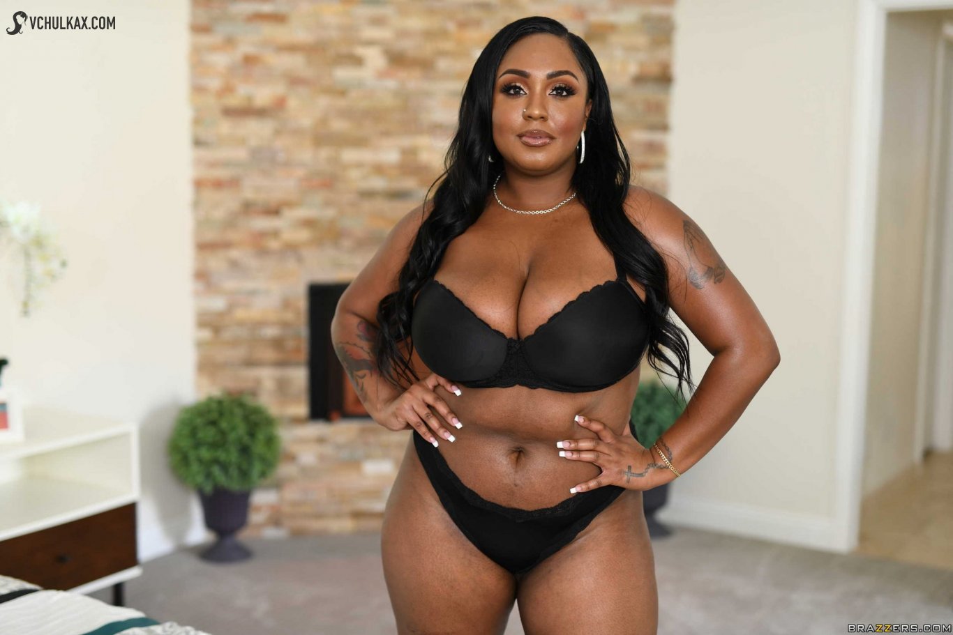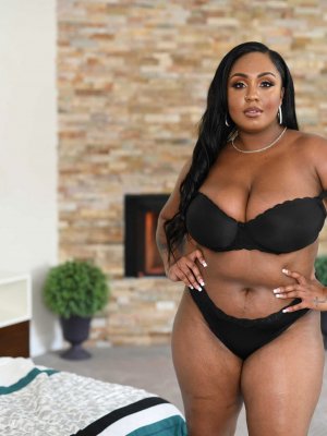 Ради нескольких килограммов спелых бананов упитанная негритянка с красивым телом согласилась раздеться перед незнакомцем. Подкрепившись, жирная баба стянула короткое платье и начала трясти широкими бедрами. Сладкая женщина в теле Layton Benton был настолько прекрасна, что хуй зрителя быстро напрягся. Сглотнув слюни, черная шкура стянула белье. Голая брюнетка с огромными буферами не только развлекала чувака стриптизом, но и также прикасалась пальцами к пизде и анальному проходу. Проветрив потные гениталии, обнаженная негритянка улеглась на постель и принялась ждать, когда ее выебут.Следующие порно фото