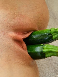Молоденькая девица худощавой комплекции собирается удивить любопытную аудиторию нашего сайта. Тощая девка подготовила тарелку со свежими фруктами и овощами для того, чтобы проверить вместительность своей вагины. Она удобно располагается возле ванны, мастурбируя при помощи вибратора. В разработанную возбужденную дырку, худышка вставляет два кабачка поочередно. Ее влагалище способно вместить больше. Голая сучка засовывает еще один кабачок в свое ненасытное лоно. Раком, с тремя овощами в письке, она получает долгожданное удовлетворение.