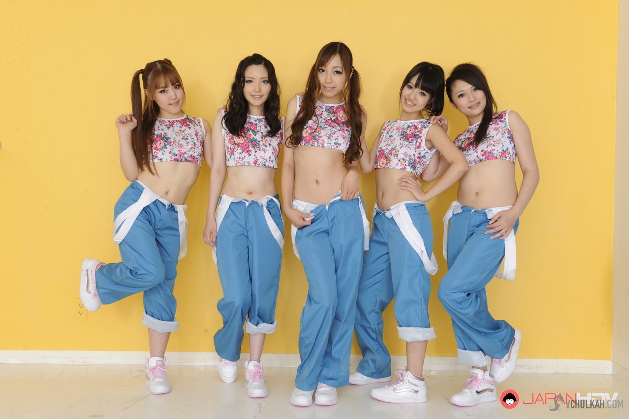 Несравненные девушки из модельного агентства фотографируются обнаженными для эротического журнала. Японские студентки в стильных комбинезонах начинают позировать в, свойственной им, игривой манере. Словно танцевальная команда из пятерых участниц, молодые японки дружно подпрыгивают вверх. Красивые азиатки хвастаются своими сочными упругими попками. Им доставляет удовольствие сниматься вместе. Они синхронно избавляются от одежды, оставив на ногах лишь кроссовки. Голые худенькие японки принимают различные ракурсы на фоне желтой стены. Отлично! Получилась зажигательная эротика с японскими красотками.
